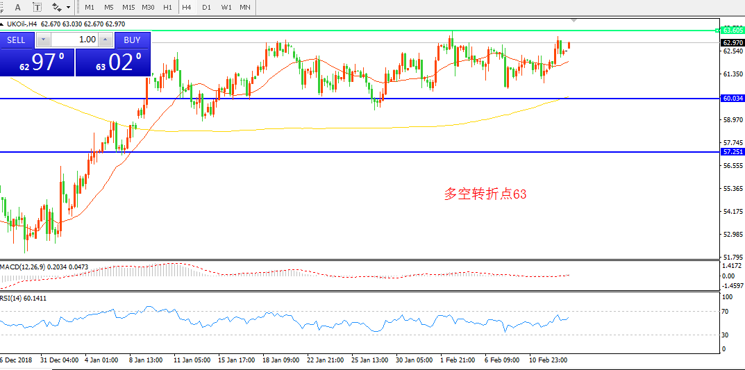 交易策略:在63.00之下看跌,目标60.00 58.00