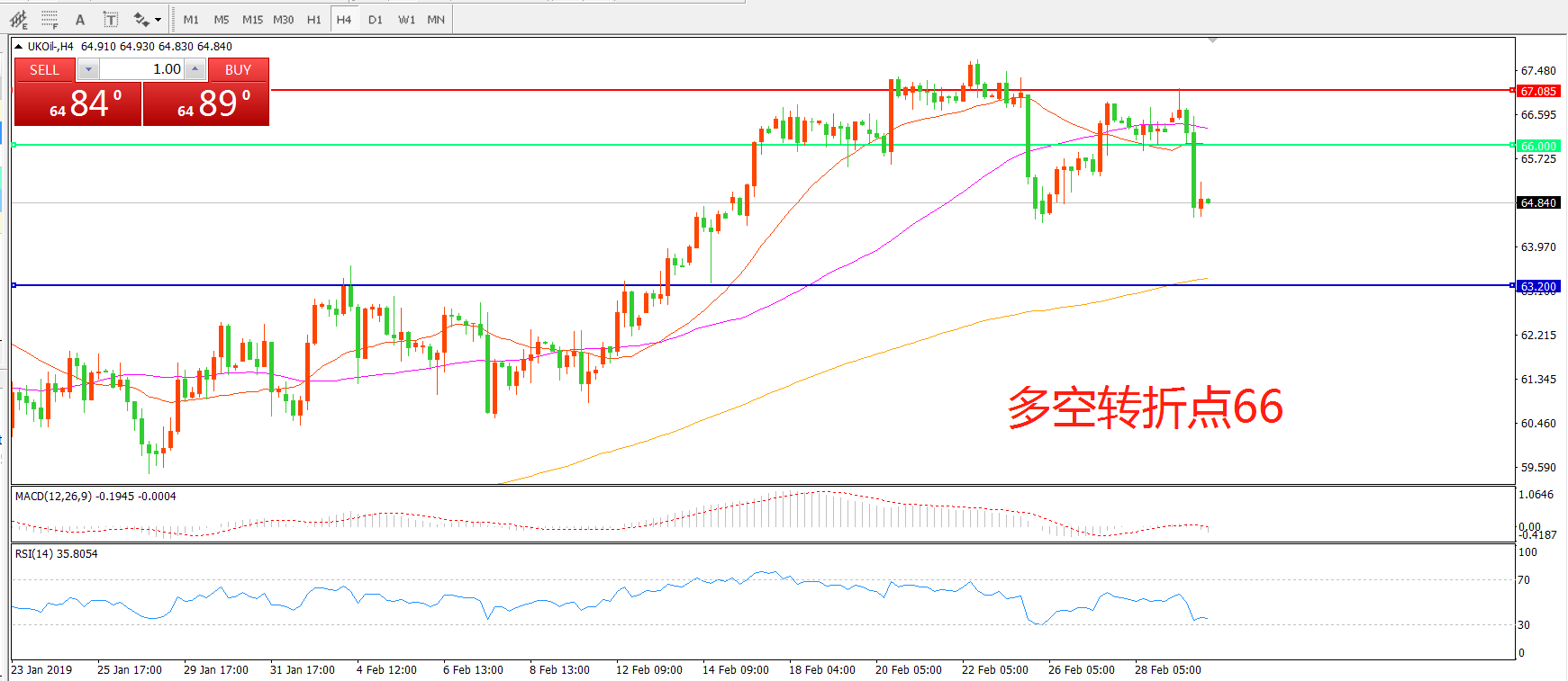 交易策略:在66.00之下看跌,目标63.00 61.00