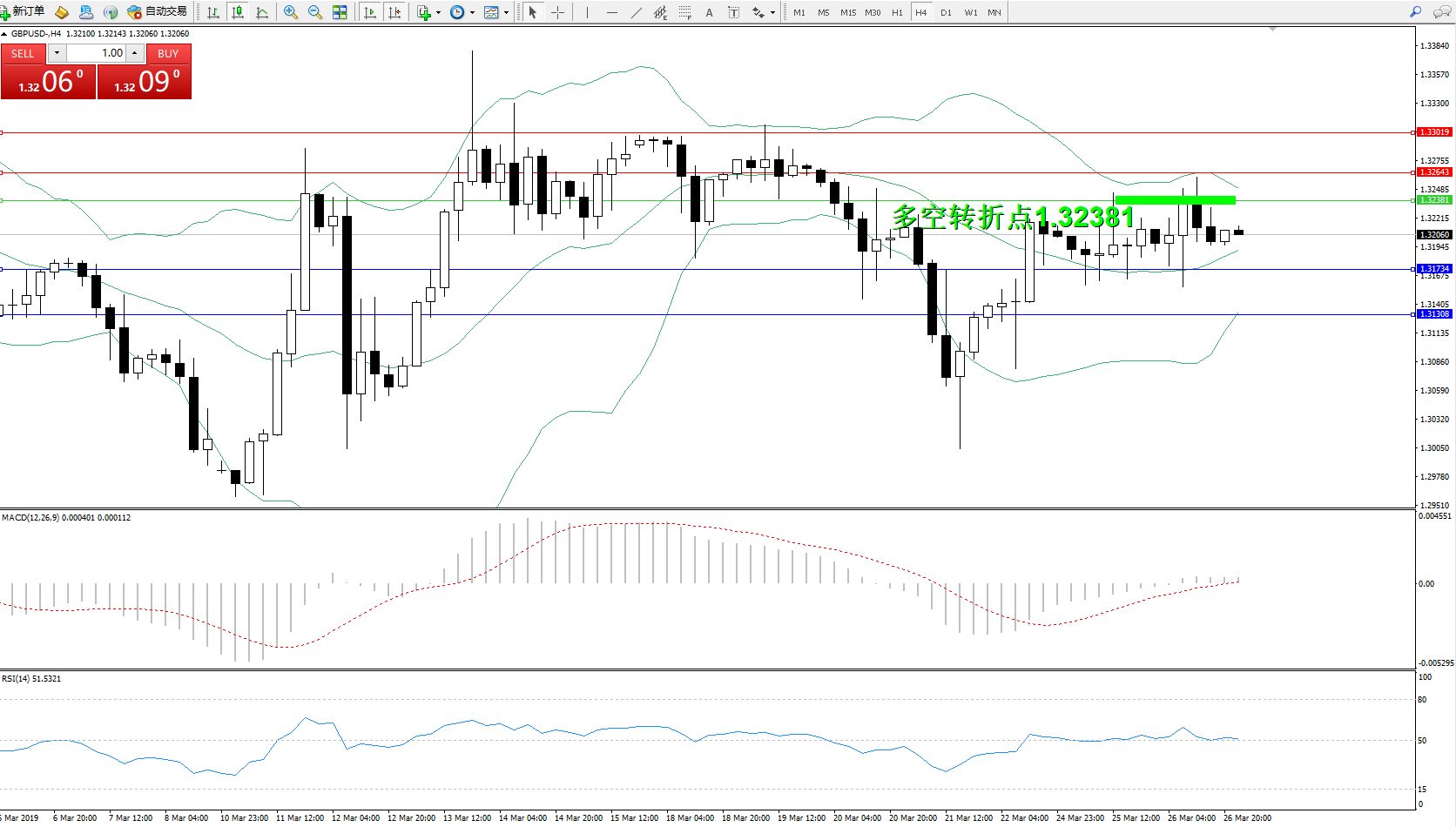 交易策略:1.32381下方看跌,目标1.31734、1.31308