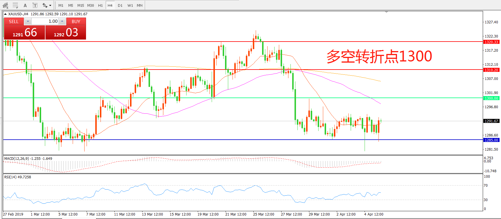 4月5日,美国劳工部公布数据显示,美国3月非农就业增加19.6万人,超过预期的17.7万人,较上月大幅反弹。值得注意的是美国3月平均每小时工资同比3.2%,创下本轮经济复苏周期以来最大涨幅。金价在非农数据出炉后,出现激烈震荡,一度走低至1285美元/盎司下方,但此后回升,最终收报1291.67美元/盎司。
