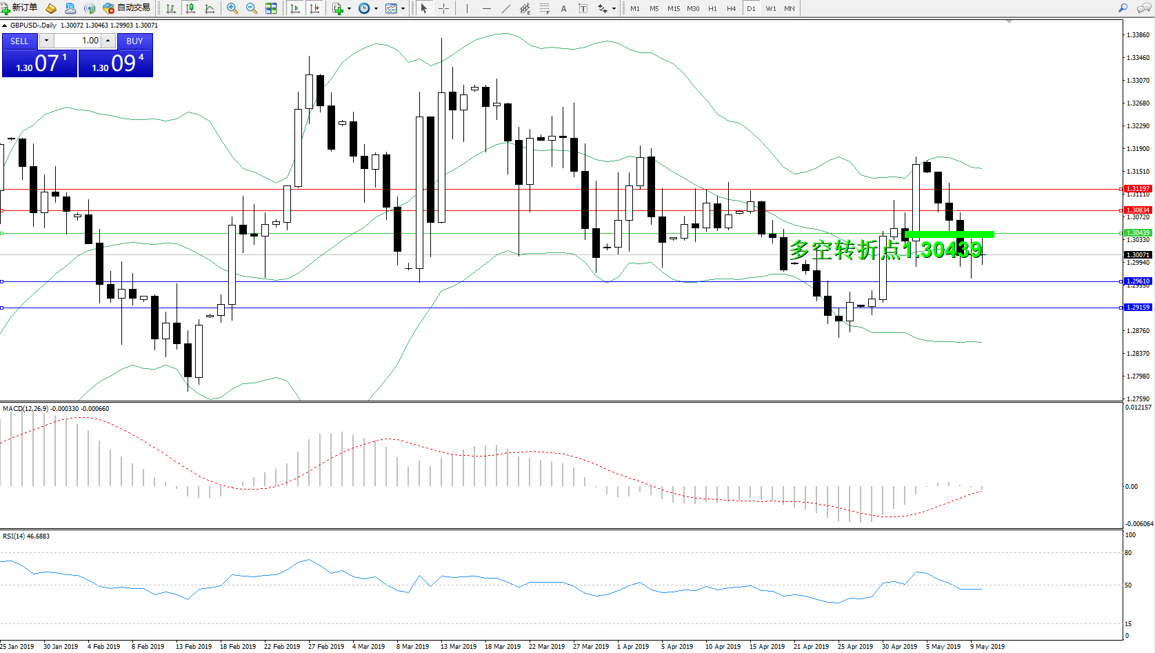 交易策略:1.30439下方看跌,目标1.29610、1.29159
