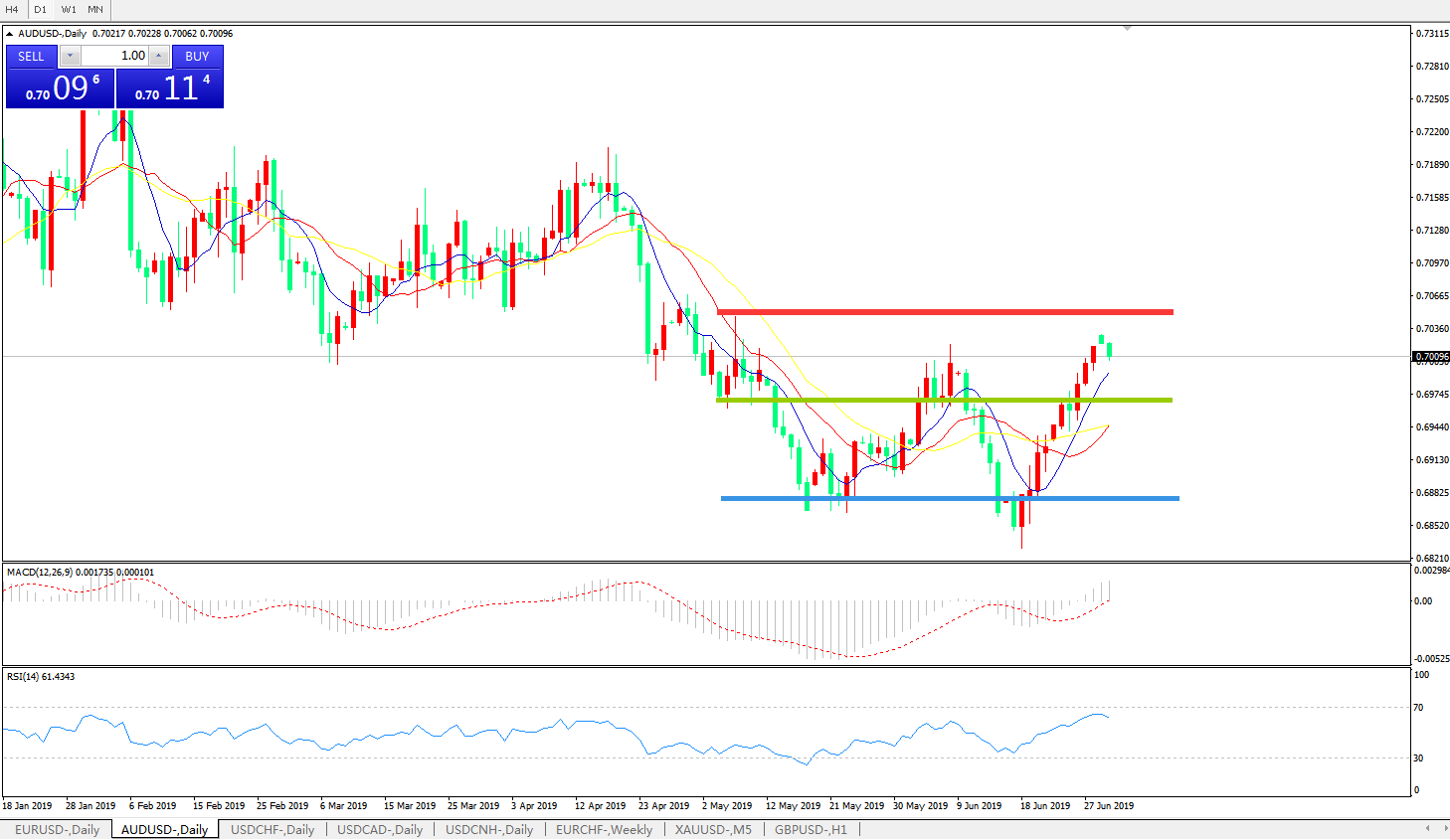 压制位:0.7020 0.7100