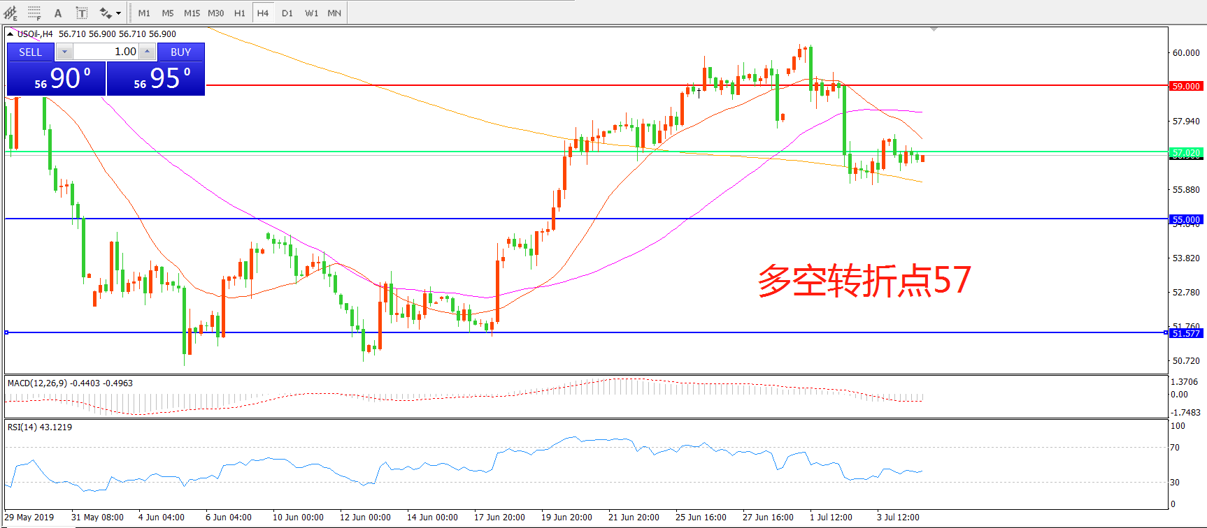 周四(7月4日) ,美油价格周四在清淡交投中下跌,最终收报56.89美元/桶。尽管欧佩克将减产协议再延长了9个月,但这一利好消息因需求的疲软而大打折扣,经济增长存在的下行压力,给国际油价带来压制。市场在没有理清方向之前,短期不排除仍会有震荡反复。