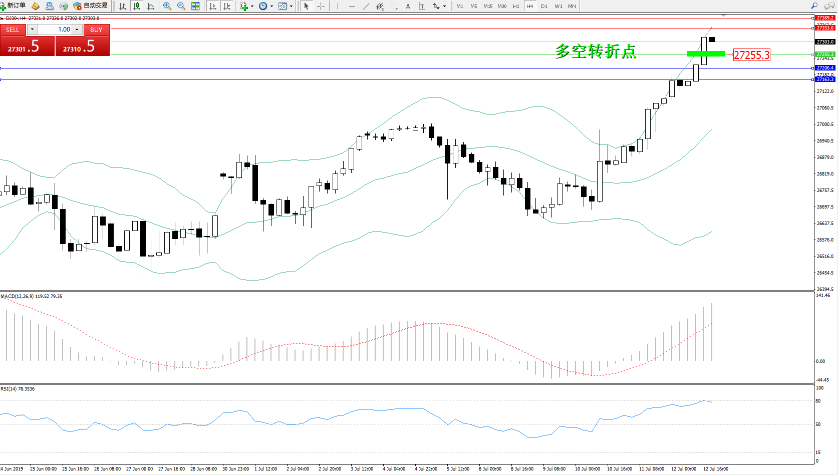 道琼斯指数7月12日(周五)收盘上涨243.90点,涨幅0.90%,报27332.03点。因美联储有90%概率降息;这将削弱为美元提供支撑的一根关键支柱;本月美联储降息50个基点的可能性为15%,美元震荡贬值走势可能在未来几个月继续。投资者越来越相信FOMC在7月31日会做出鸽派政策决定。