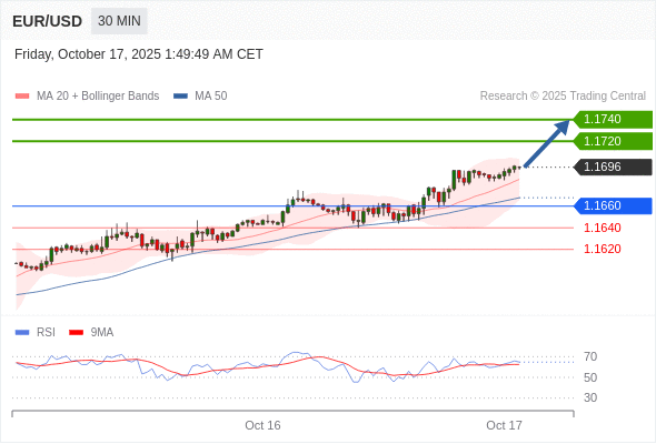 在 1.1660 之上,看涨,目标价位为 1.1720 ,然后为 1.1740 。