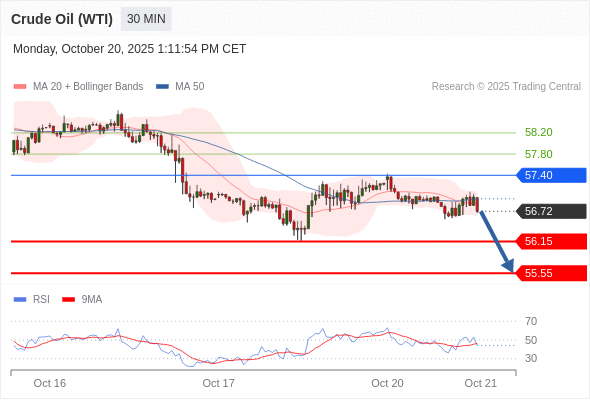 在 57.40 之下,看跌,目标价位为 56.15 ,然后为 55.55 。