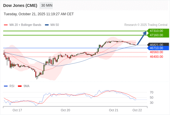 在 46710.00 之上,看涨,目标价位为 47060.00 ,然后为 47160.00 。