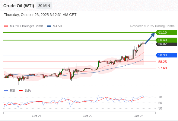 在 58.90 之上,看涨,目标价位为 60.40 ,然后为 61.15 。