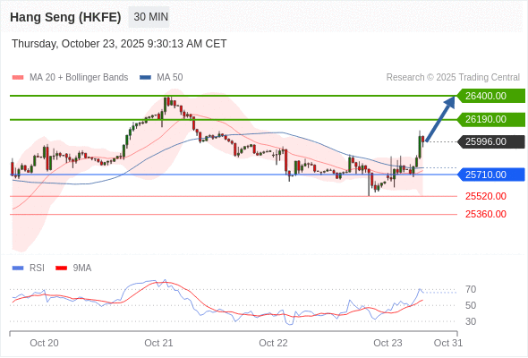 交易策略: 在 25710.00 之上,看涨,目标价位为 26190.00 ,然后为 26400.00 。