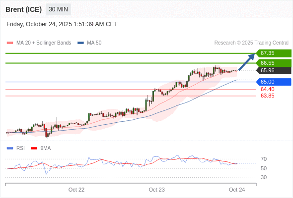 在 65.00 之上,看涨,目标价位为 66.55 ,然后为 67.35 。