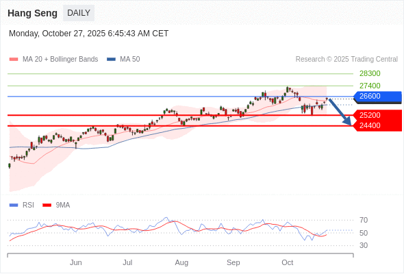 在 26600 之下,看跌,目标价位为 25200 ,然后为 24400 。