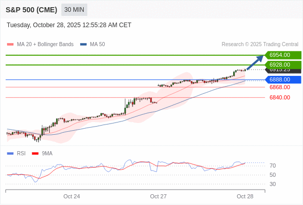 在 6888.00 之上,看涨,目标价位为 6928.00 ,然后为 6954.00 。