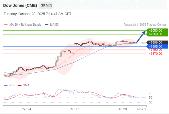 在 47585.00 之上,看涨,目标价位为 47950.00 ,然后为 48050.00 。