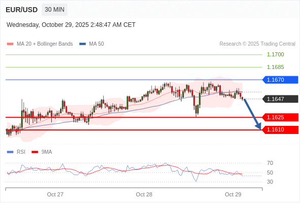 在 1.1670 之下,看跌,目标价位为 1.1625 ,然后为 1.1610 。