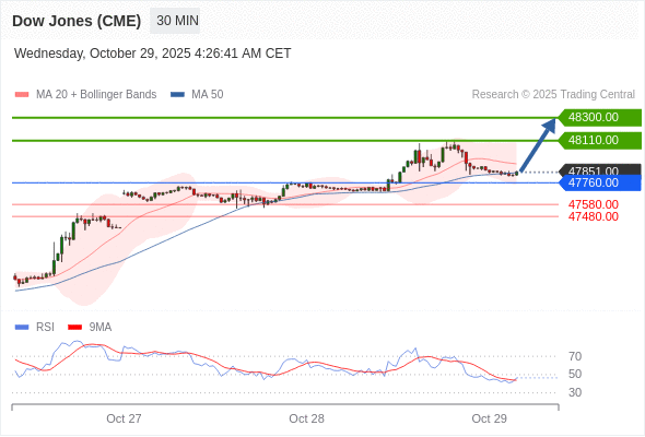 在 47760.00 之上,看涨,目标价位为 48110.00 ,然后为 48300.00 。