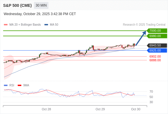 在 6925.00 之上,看涨,目标价位为 6980.00 ,然后为 7000.00 。
