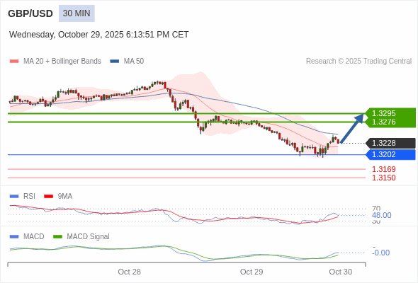 英镑/美元 当日内 : 有上涨的可能,目标价位定在 1.3295 。
