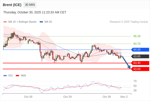 交易策略: 在 64.30 之下,看跌,目标价位为 63.40 ,然后为 63.00 。
