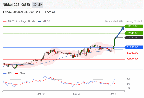 在 51650.00 之上,看涨,目标价位为 52640.00 ,然后为 53110.00 。