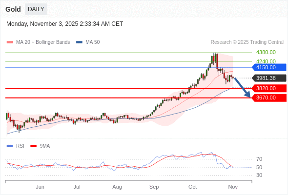 交易策略: 在 4150.00 之下,看跌,目标价位为 3820.00 ,然后为 3670.00 。