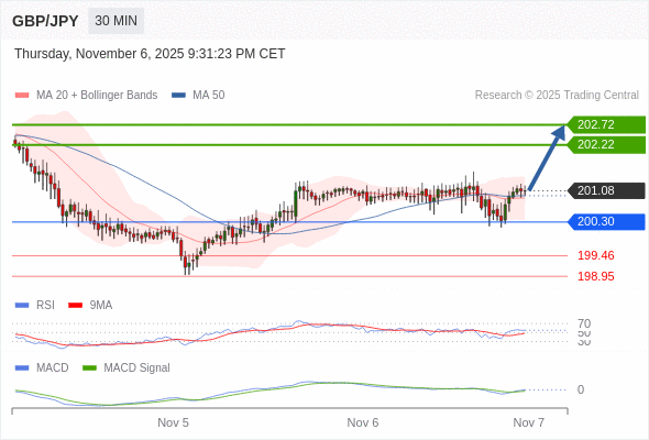 英镑/日元 当日内: 看涨,当 200.30 为支撑位。