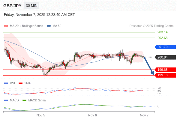 当 201.79 维持阻力位时,存在回归 199.18 的风险。