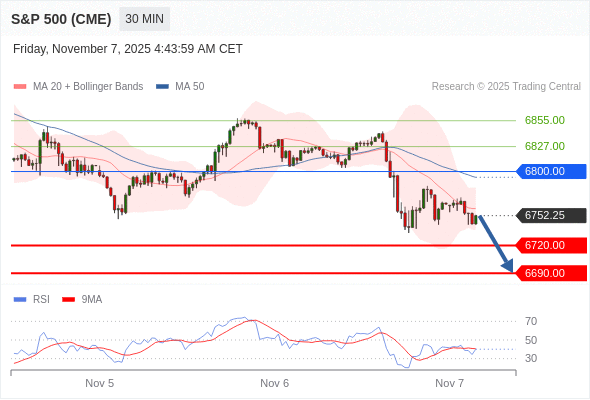 交易策略: 在 6800.00 之下,看跌,目标价位为 6720.00 ,然后为 6690.00 。