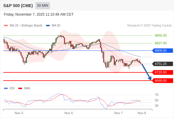 在 6800.00 之下,看跌,目标价位为 6720.00 ,然后为 6690.00 。