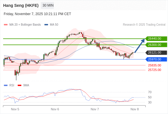 在 25970.00 之上,看涨,目标价位为 26300.00 ,然后为 26440.00 。