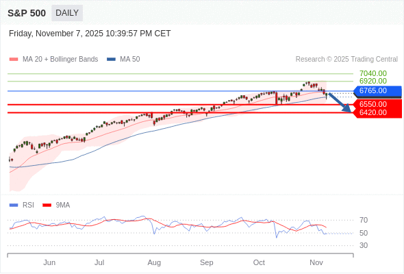 交易策略: 在 6765.00 之下,看跌,目标价位为 6550.00 ,然后为 6420.00 。