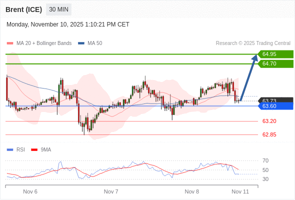 在 63.60 之上,看涨,目标价位为 64.70 ,然后为 64.95 。