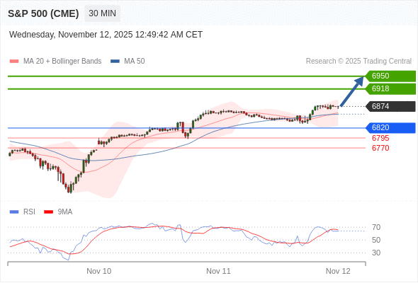 在 6820 之上,看涨,目标价位为 6918 ,然后为 6950 。