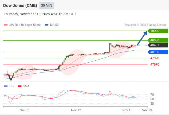 在 48160 之上,看涨,目标价位为 48630 ,然后为 49000 。