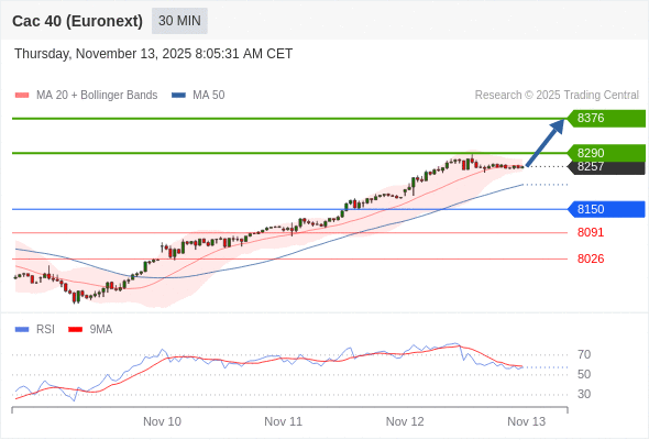 在 8150 之上,看涨,目标价位为 8290 ,然后为 8376 。