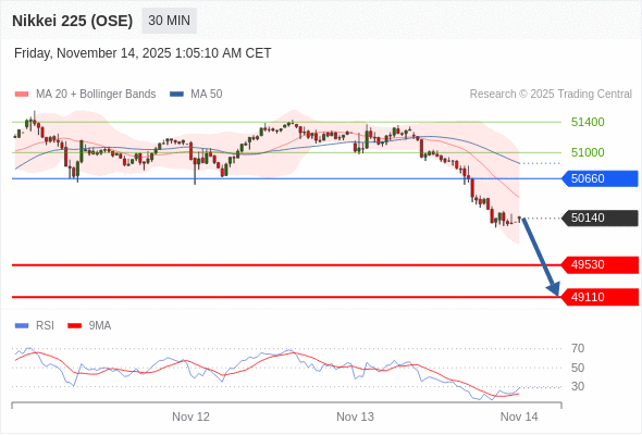 在 50660 之下,看跌,目标价位为 49530 ,然后为 49110 。