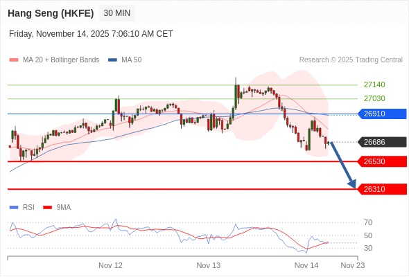 在 26910 之下,看跌,目标价位为 26530 ,然后为 26310 。