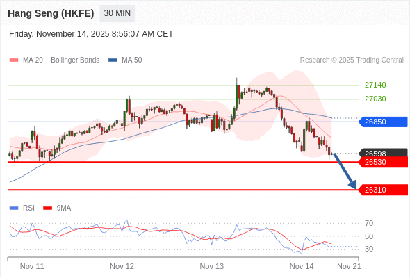 在 26850 之下,看跌,目标价位为 26530 ,然后为 26310 。