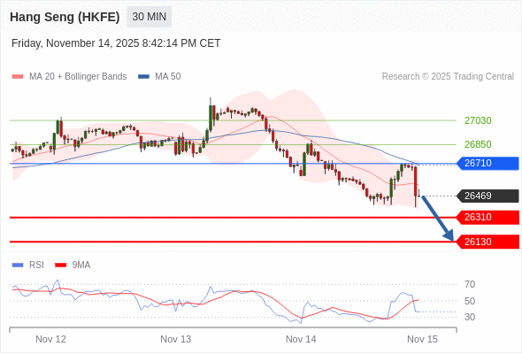 在 26710 之下,看跌,目标价位为 26310 ,然后为 26130 。