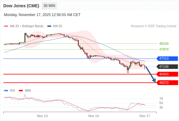 在 47510 之下,看跌,目标价位为 46900 ,然后为 46570 。