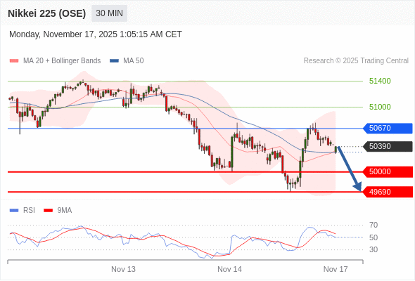 在 50670 之下,看跌,目标价位为 50000 ,然后为 49690 。
