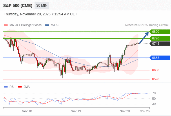 在 6685 之上,看涨,目标价位为 6770 ,然后为 6800 。