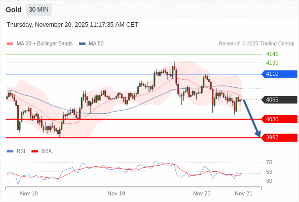 在 4110 之下,看跌,目标价位为 4030 ,然后为 3997 。