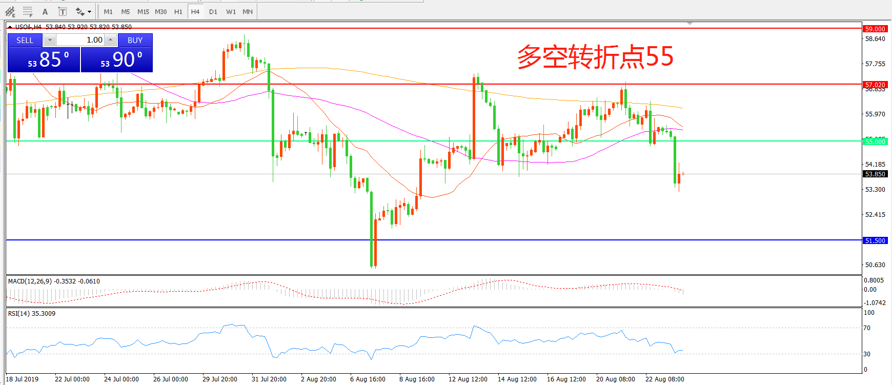 交易策略:在55.00之下看跌,目标51.50 49.00