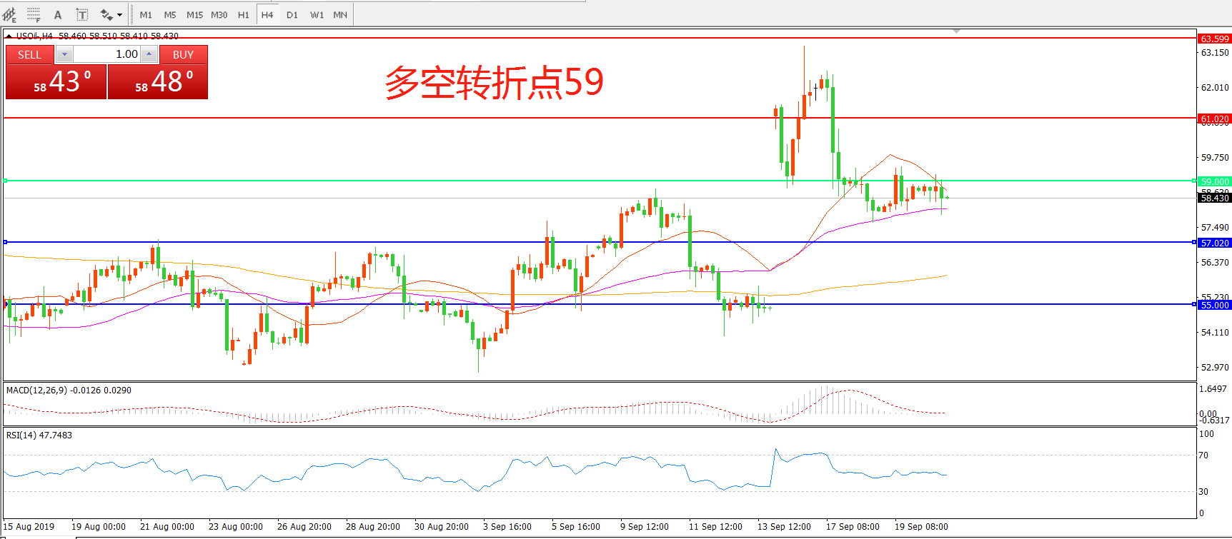 交易策略: 在59.00之下看跌,目标57.00 55.00
