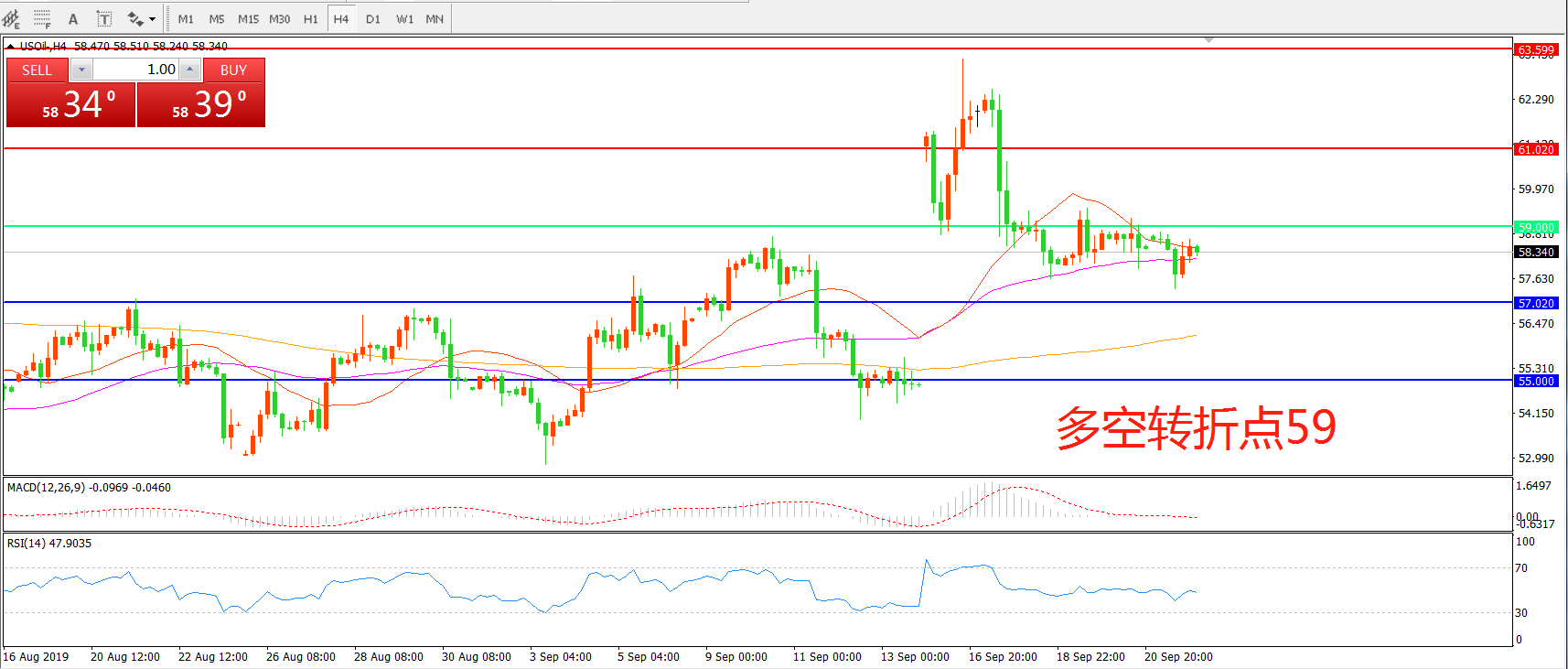 交易策略: 在59.00之下看跌,目标57.00   55.00