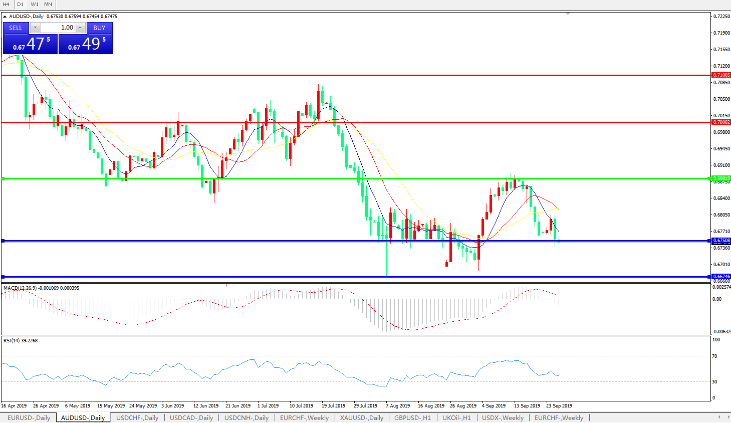 澳元兑美元在周三日内再度回落,这意味着隔夜反弹上攻0.68关口的试探再度无功而返。虽然,日内新西兰联储维稳利率并释放相对鹰派措辞的状况,本该对澳元汇价有连带拉动,但是这却敌不过风险偏好情绪大背景的恶化; 隔夜,美国总统特朗普被惊爆再度陷入政治丑闻,将面临弹劾指控,此消息连同此前英国首席被法院裁决败诉的消息一同,令美欧政局风险一同浮现,这对于市场风险偏好情绪构成重挫。并且,这也可能令美国与全球多个经济体之后在贸易领域的谈判再添变数,对于在贸易消息方面敏感的澳元,这并不是什么好消息; 所以,澳洲联储主席洛威周二的讲话虽然平抑了下周降息预期,推动澳元走向,但却敌不过外部负面消息的冲击。在经济外部环境堪忧的状况下,澳洲联储年内仍可能继续扩大宽松力度,这对于澳元中长期前景也并非吉兆。