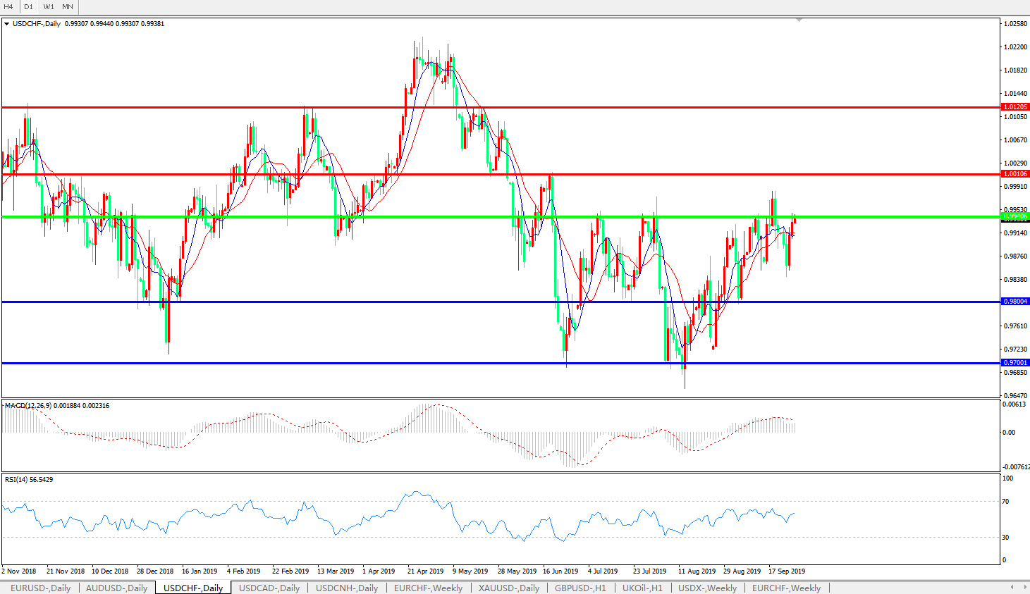 美元瑞郎USDCHF   日线图:
