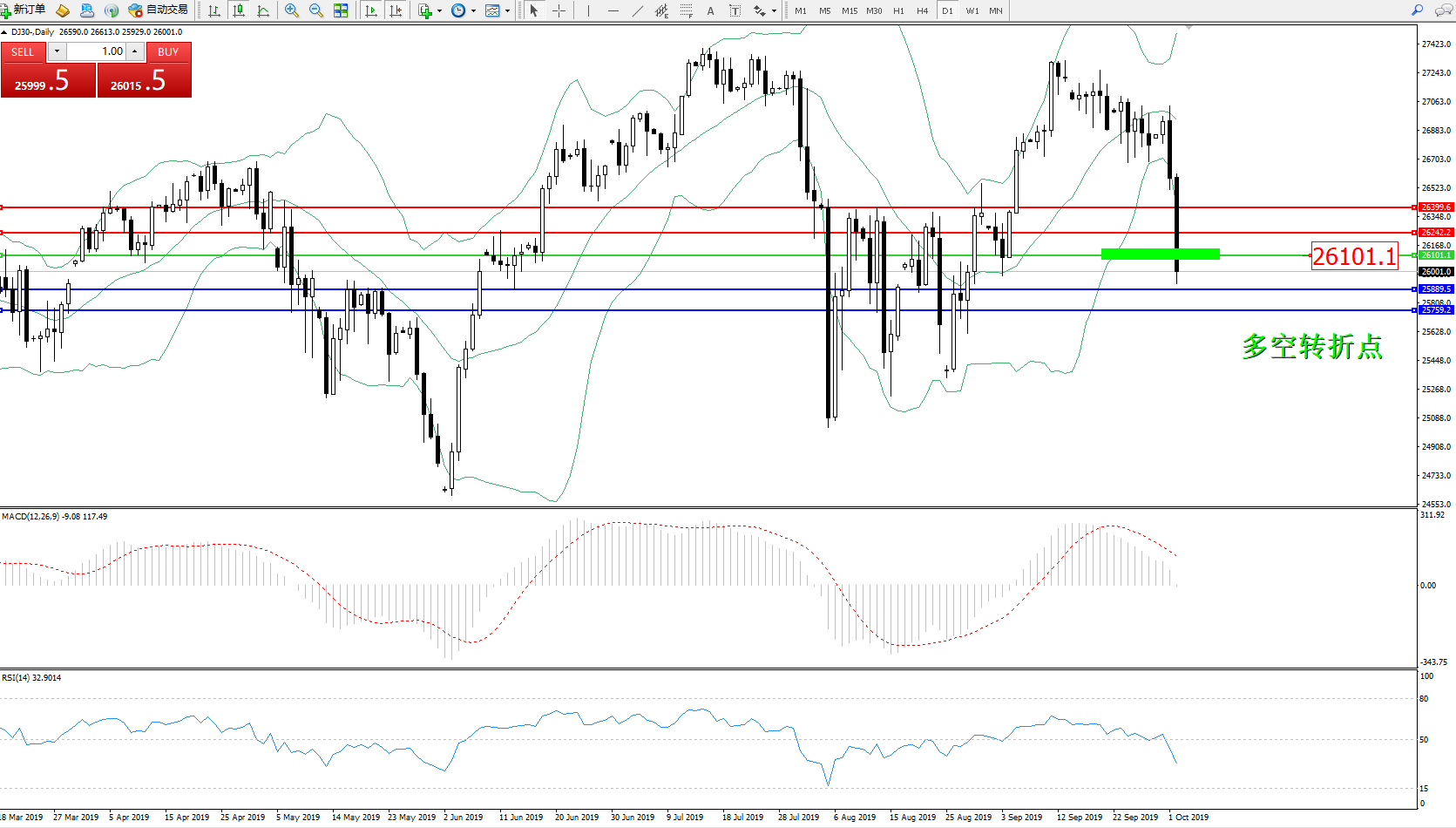 道琼斯指数10月2日(周三)收盘下跌494.40点,跌幅1.86%,报26078.62点。美国ADP就业报告显示,9月新增就业岗位低于预期,表明令制造业承压的贸易紧张局势可能蔓延至就业市场;市场对数据不及预期过于敏感,就业增长一直是美国经济复苏最强劲的支柱之一,在贸易争端的大背景下,非常担忧周五将发布的美国非农就业报告情况,不过,尽管制造业出现萎缩,非农就业数据应该依然稳健。
