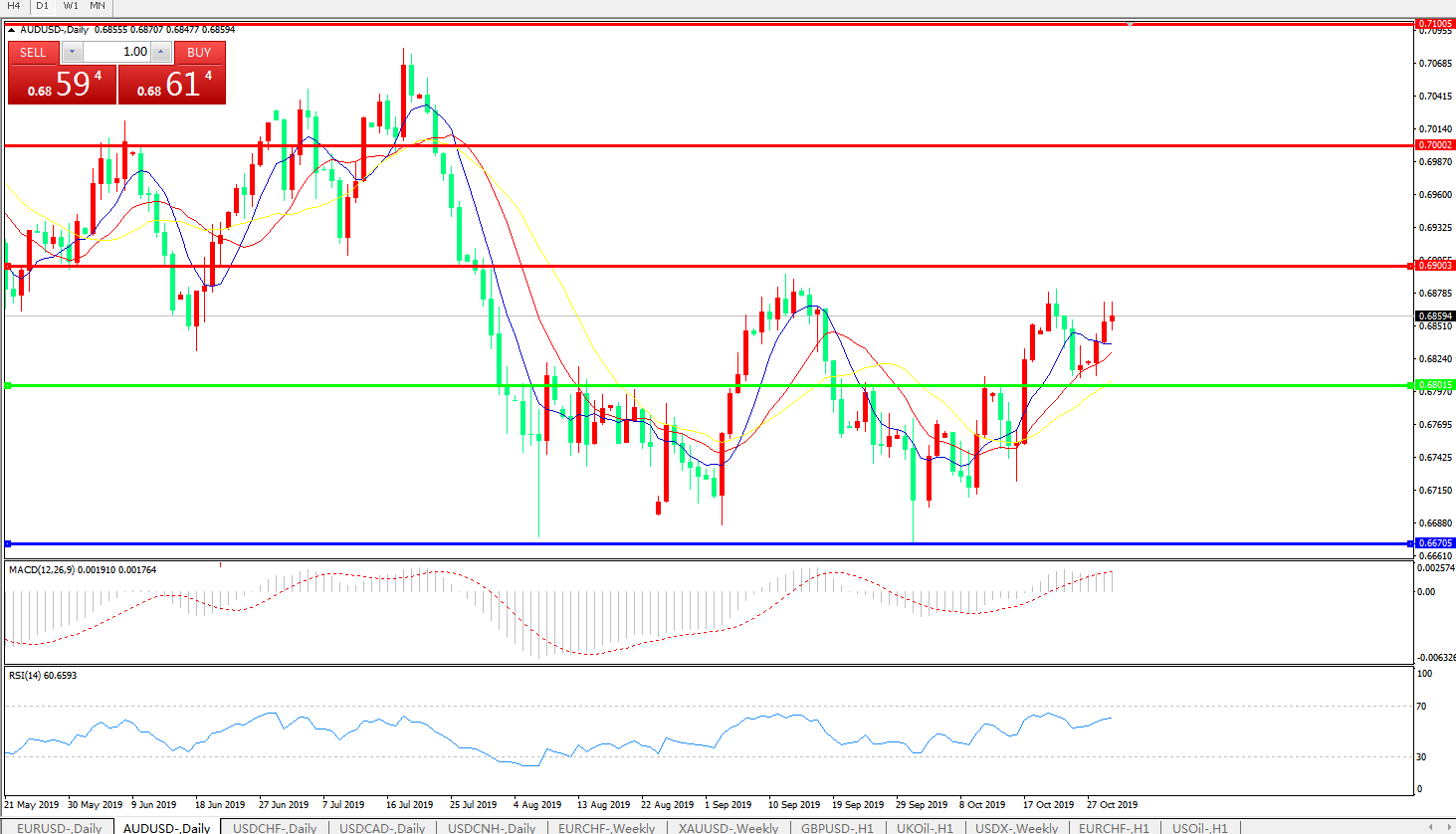 交易策略:0.6800上方看涨,目标0.6900、0.7000