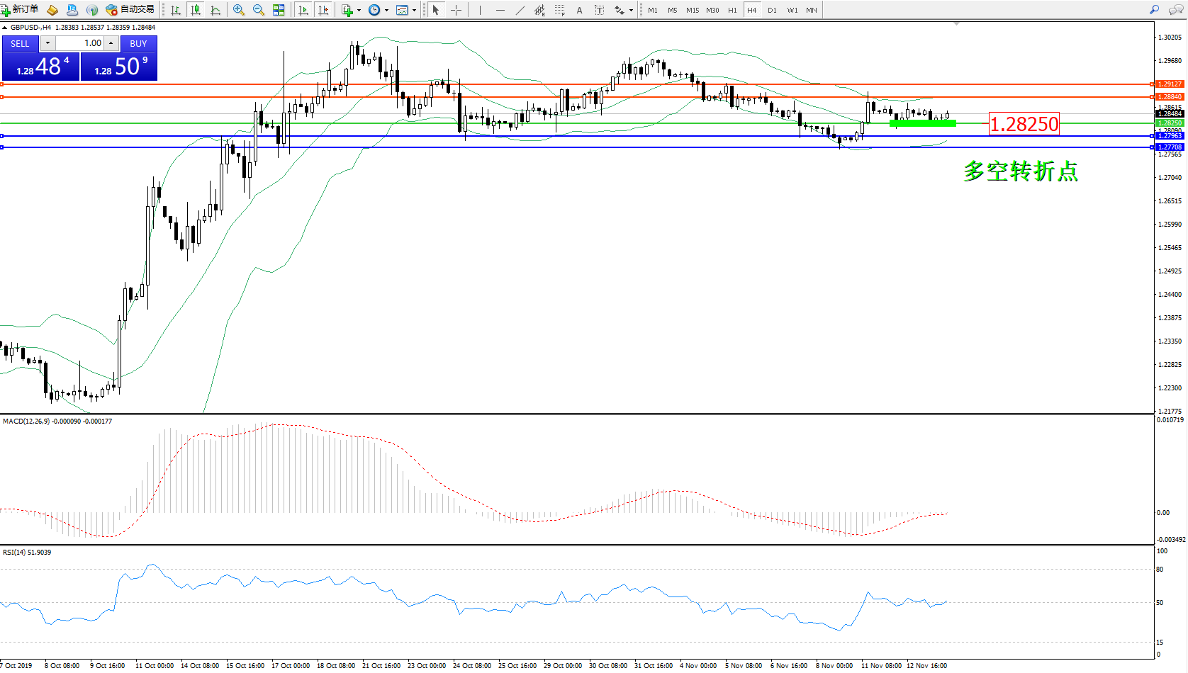交易策略:1.28250上方看涨,目标1.28840、1.29127